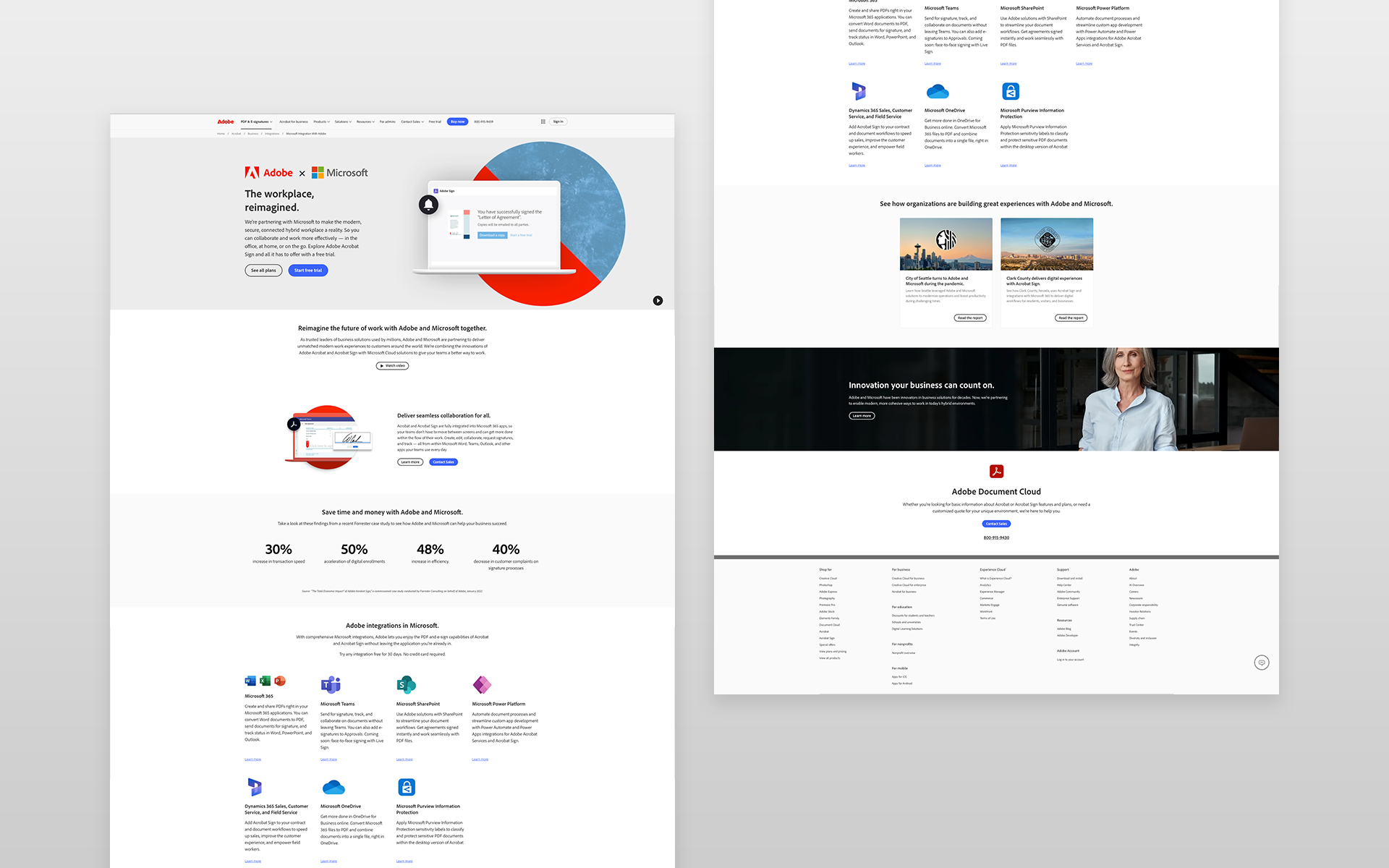Adobe and Microsoft teamed up to provide seamless integration between Adobe Acrobat and Microsoft 365, offering users a more efficient and collaborative way to work with PDFs within Microsoft’s ecosystem. My role was to design a new dedicated partnership page that clearly communicated this integration, its benefits, and how users could get started. The page was shared via an email campaign to drive awareness and engagement.